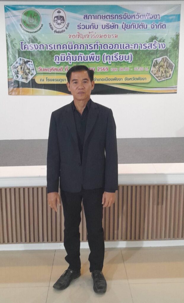 วันที่ 22 มกราคม 2569 นายพงศา กสิบาล รองผู้อำนวยการ รักษาการในตำแหน่งผู้อำนวยการวิทยาลัยเกษตรและเทคโนโลยีพังงา มอบหมายให้นายยุทธนา สุขจิรัง ครู คศ.2 หัวหน้าแผนกวิชาพืชศาสตร์ เข้าร่วมพิธีเปิดการอบรม โครงการเทคนิคการทำดอกและการเสริมภูมิคุ้มกันพืช (ทุเรียน) ซึ่งจัดขึ้นโดยสภาเกษตรกรจังหวัดพังงา ร่วมกับบริษัทปุ๋ยกัปตัน จำกัด ณ โรงแรมภูงา ตำบลตากแดด อำเภอเมือง จังหวัดพังงา