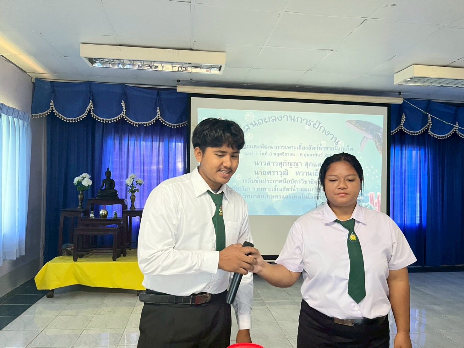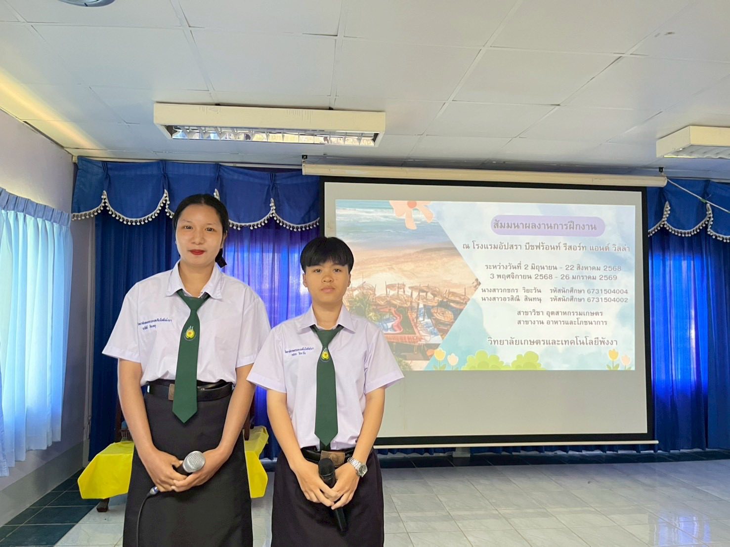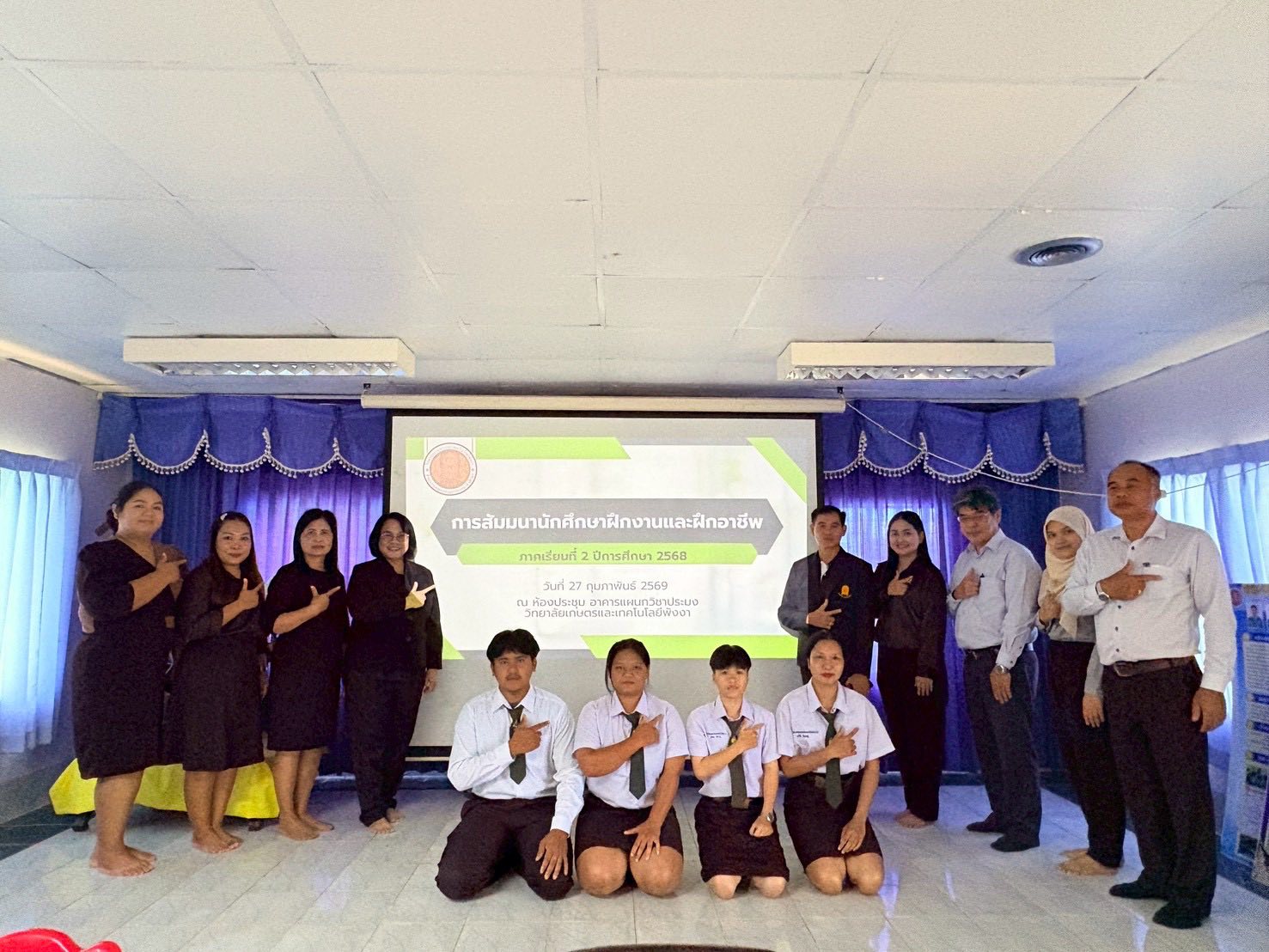 โดย นายพงศา กสิบาล รองผู้อำนวยการ รักษาการในตำแหน่งผู้อำนวยการวิทยาลัยเกษตรและเทคโนโลยีพังงา ได้มอบหมายให้คณะกรรมการฝ่ายวัดและให้คะแนนการสัมมนาการฝึกงาน ปฏิบัติหน้าที่ในการให้คะแนนการสัมมนา พร้อมทั้งให้คำแนะนำและให้กำลังใจแก่นักศึกษา